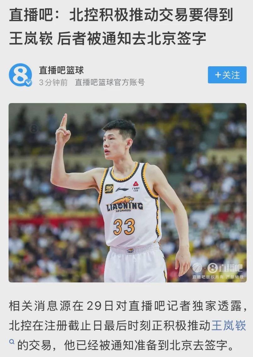 但是经过一整天的紧张商量,北控男篮最终无缘交易得到王岚嵚。